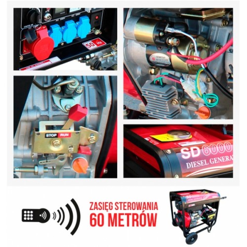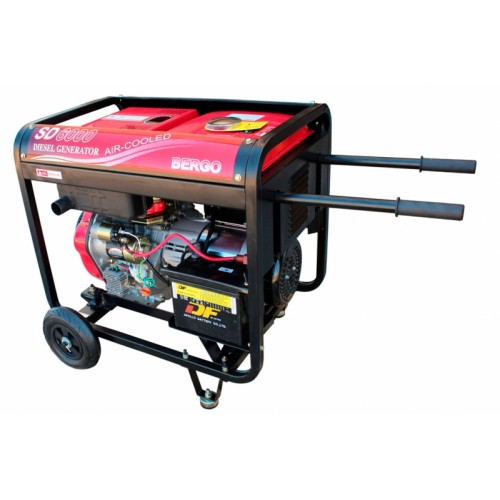 Дизельный генератор Bergo SD 6000 - модель автономной миниэлектростанции, компании Bergo. Работает он на дизельном топливе. Его мощность (показатели) номинальные - 5,5 кВт (7,5 л.с.) и максимальные - 6,7 кВт (9,11 л.с.). Количество фаз - три. Частота тока - 50 Гц. Показатели номинального напряжения - 400 В. Двигатель одноцилиндровый, четырехтактный, и запускается ручным или электрическим стартером, который защищает его от быстрого снашивания, продлевая срок службы. Кубический объем двигателя - 438 см. Бак для топлива - 7,5 литра.